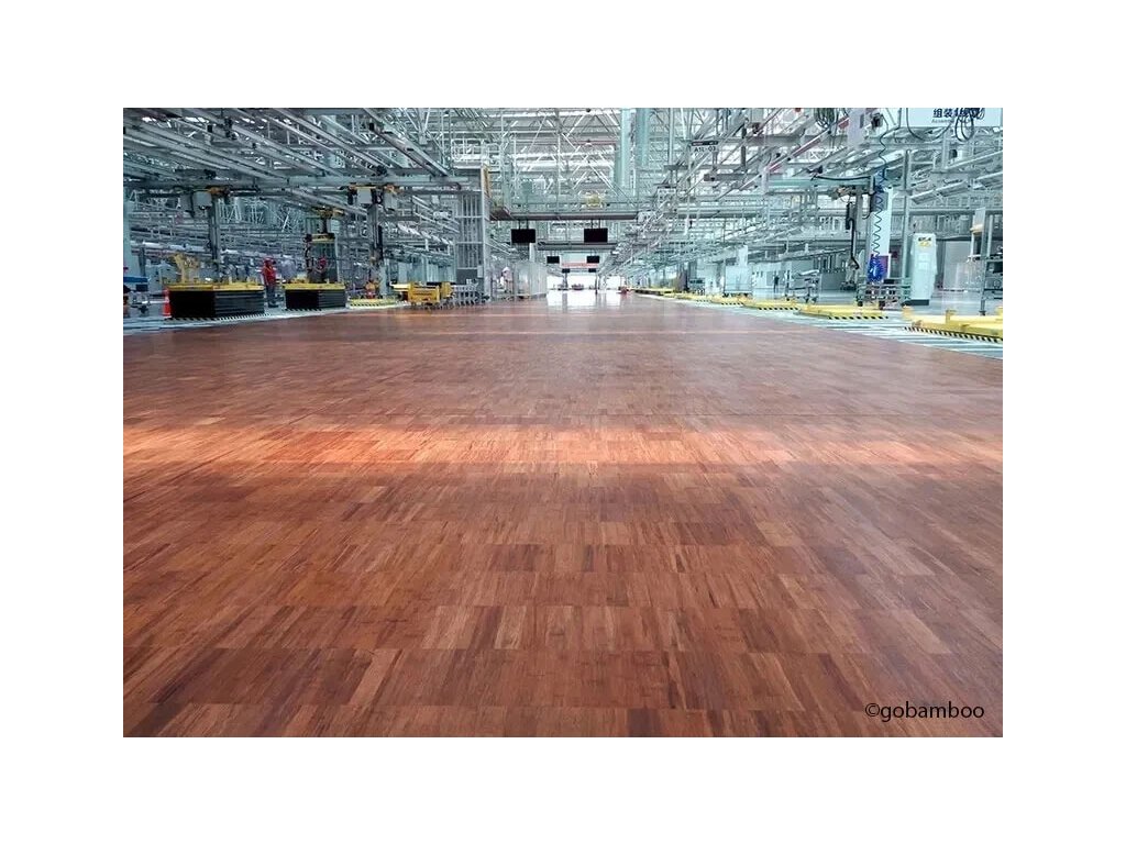Podlahové dosky Bamboo Flooring Industrial pozostávajú z mnohých krátkych, pevných bambusových pásikov. Vďaka veľkému množstvu krátkych, pevných bambusových pásikov dokáže táto podlaha zvládnuť obrovskú váhu a absorbovať veľmi veľké nárazy. Táto podlaha je špeciálne navrhnutá na bezproblémovú inštaláciu na veľkej ploche.