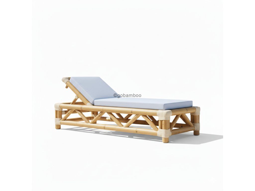Masívna konštrukcia z prírodného bambusu zabezpečuje vysokú stabilitu a dlhú životnosť, pričom si zachováva vizuálnu ľahkosť. Precízne spracovaný vzhľad a charakteristická geometrická podpera dodávajú lehátku remeselný charakter a nadčasový dizajn. Polohovateľná chrbtová opierka poskytuje maximálny komfort pri relaxácii, čítaní alebo opaľovaní.