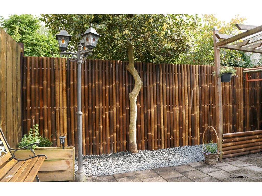 Tento panelový plot z obrovského tmavohnedého bambusu Java Black dodá vašej záhrade, terase alebo balkónu krásny a exotický nádych. Hrubé bambusové tyče Java Black v týchto plotových paneloch majú priemer 6-9 cm a sú spojené vnútornými vodorovnými bambusovými tyčami a hmoždinkami, ktoré prechádzajú celou šírkou panelového plotu. Veľmi stabilný a odolný bambusový plot so životnosťou cca. 15 rokov.