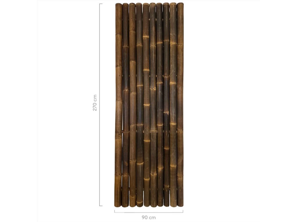 Tento panelový plot z obrovského tmavohnedého bambusu Java Black dodá vašej záhrade, terase alebo balkónu krásny a exotický nádych. Hrubé bambusové tyče Java Black v týchto plotových paneloch majú priemer 6-9 cm a sú spojené vnútornými vodorovnými bambusovými tyčami a hmoždinkami, ktoré prechádzajú celou šírkou panelového plotu. Veľmi stabilný a odolný bambusový plot so životnosťou cca. 15 rokov.