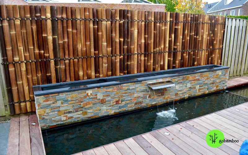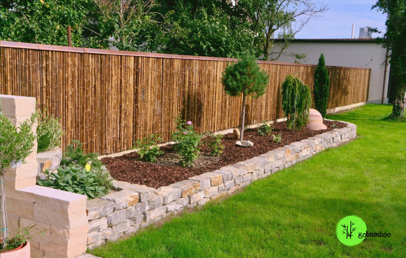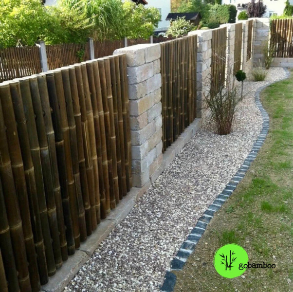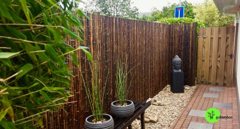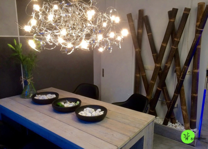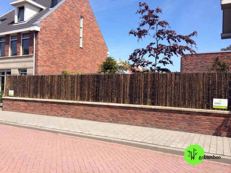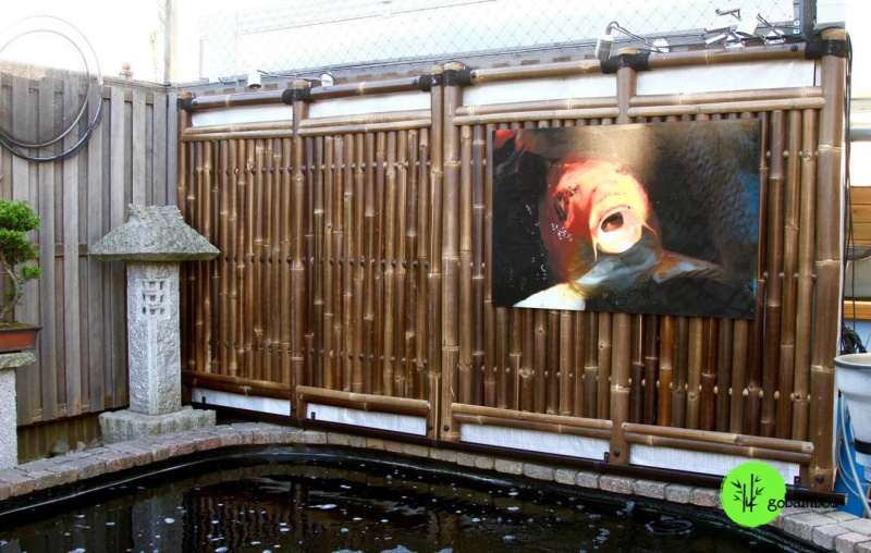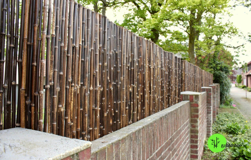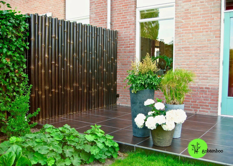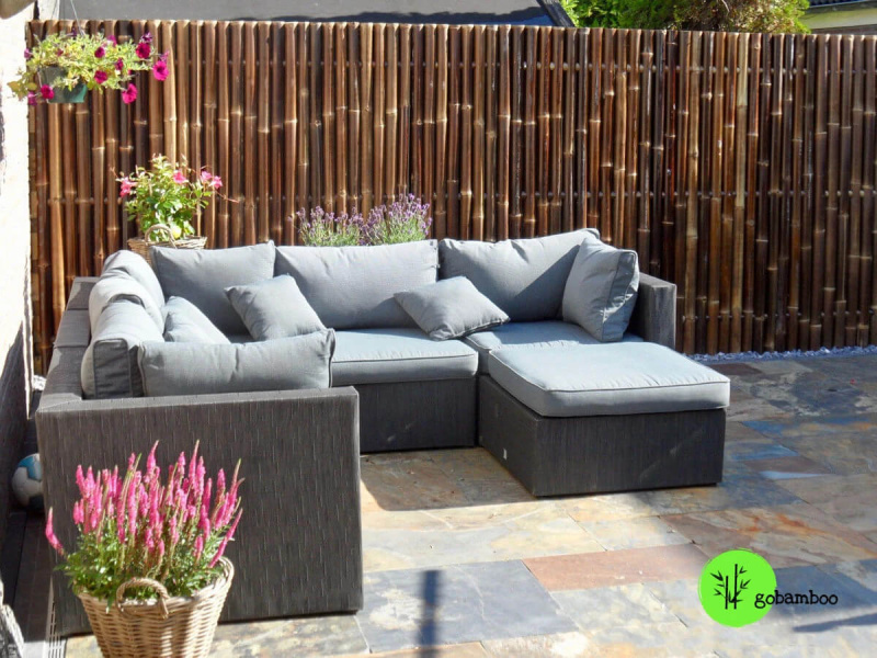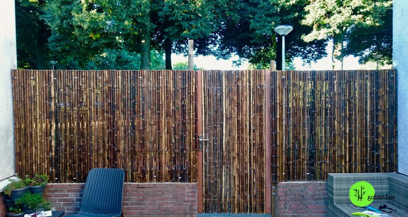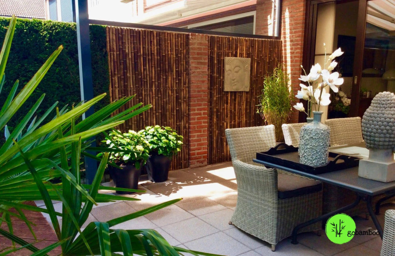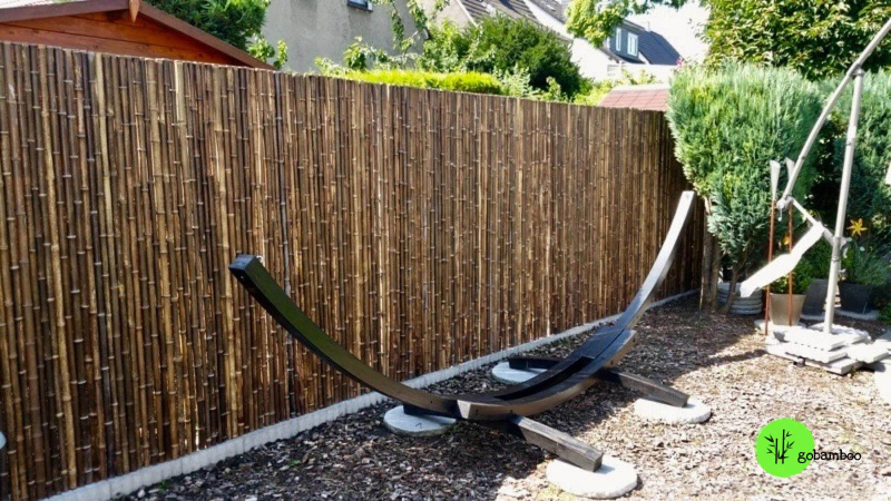 Panel z polkruhových bambusových tyčí tmavohnedej farby