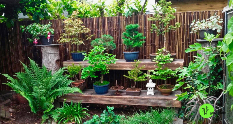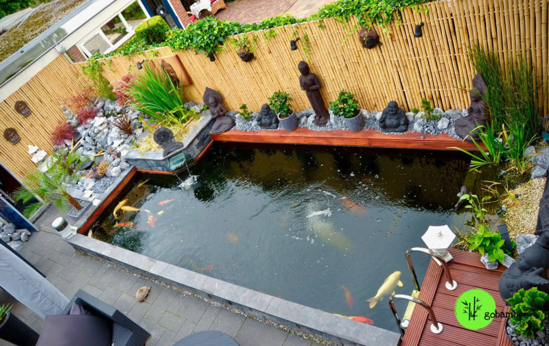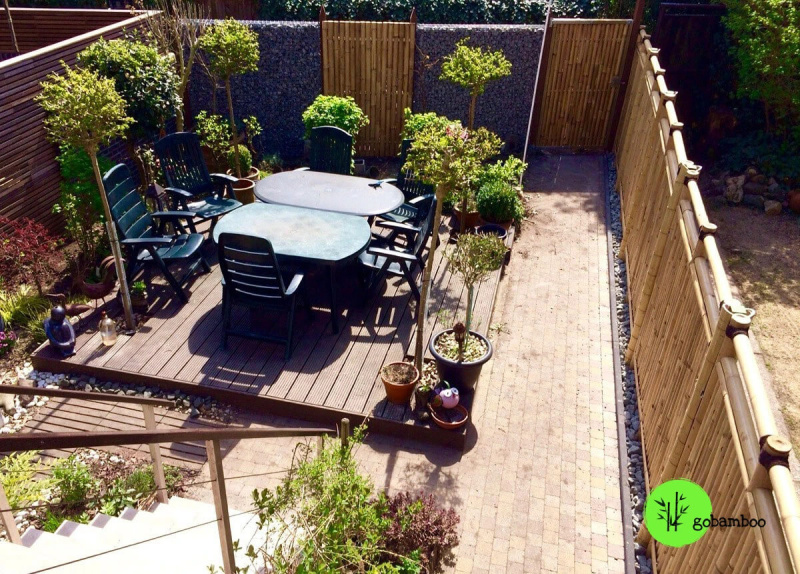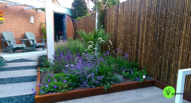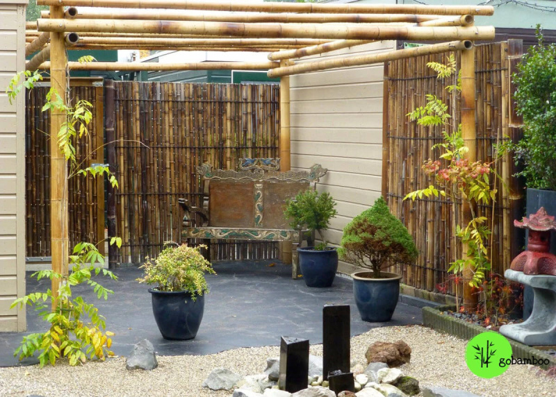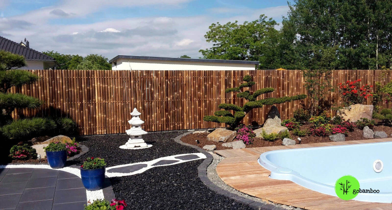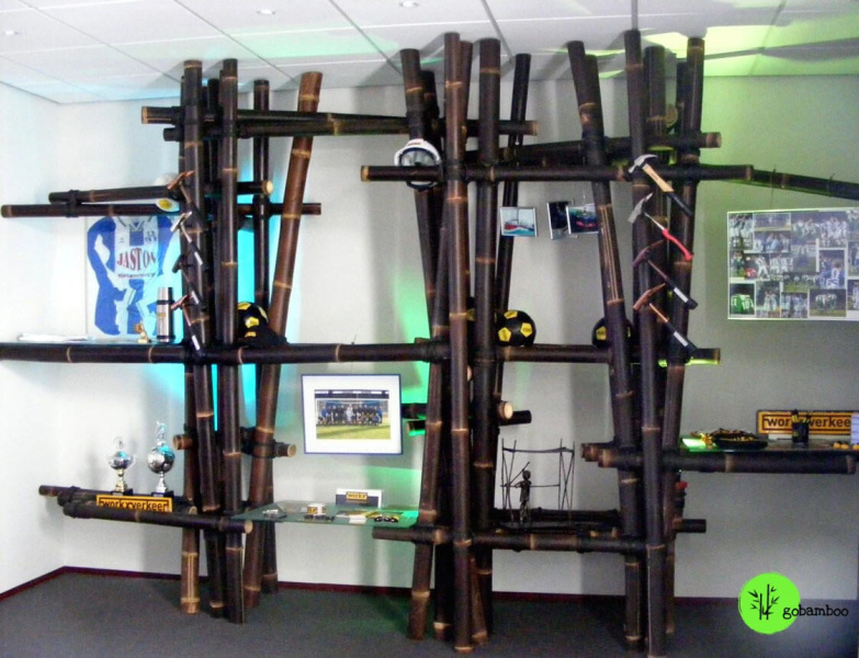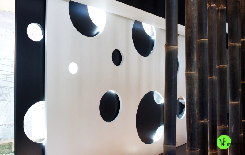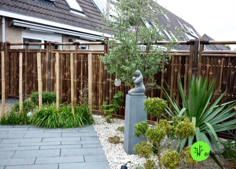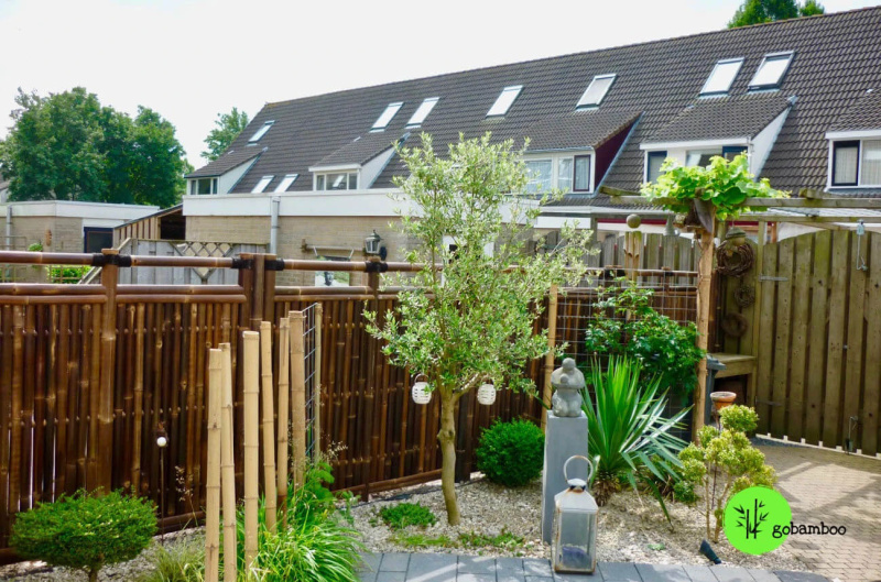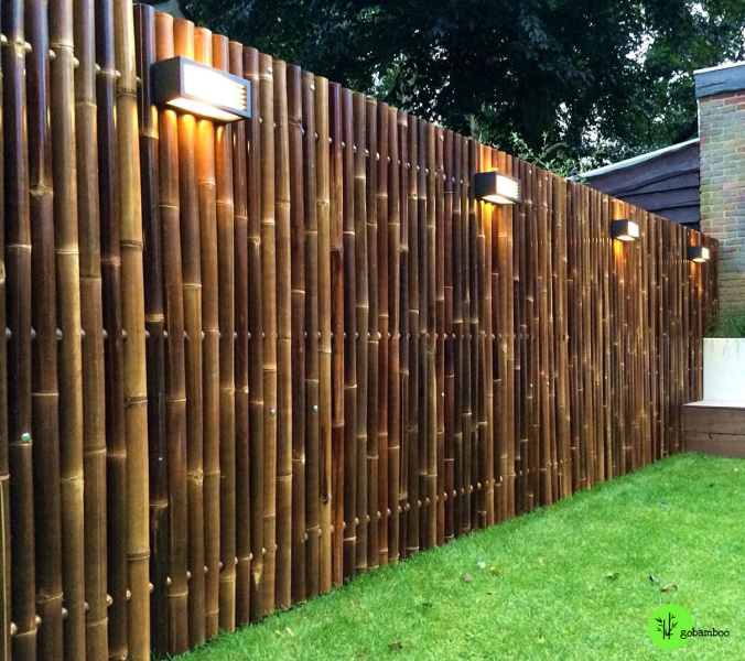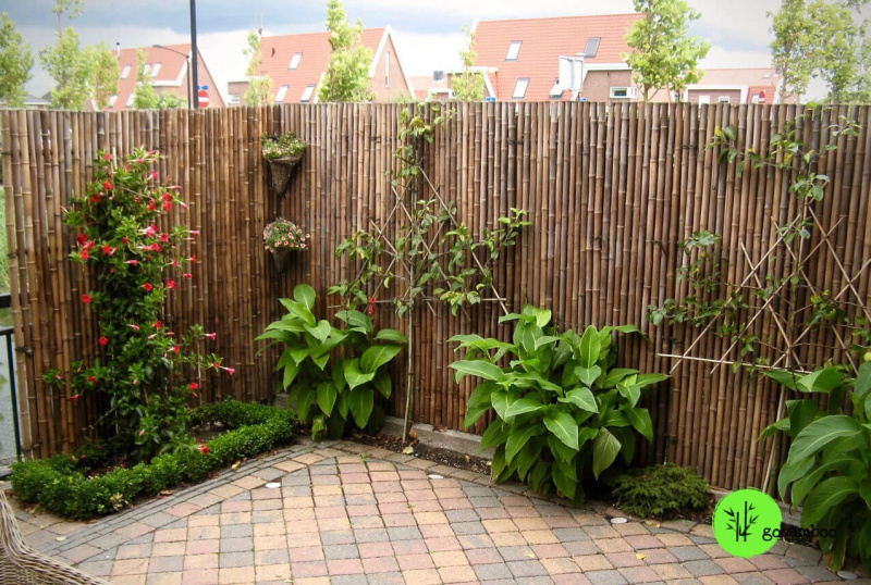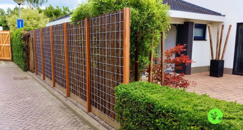 Panel z polkruhových bambusových tyčí tmavohnedej farby