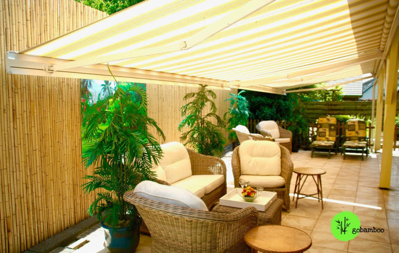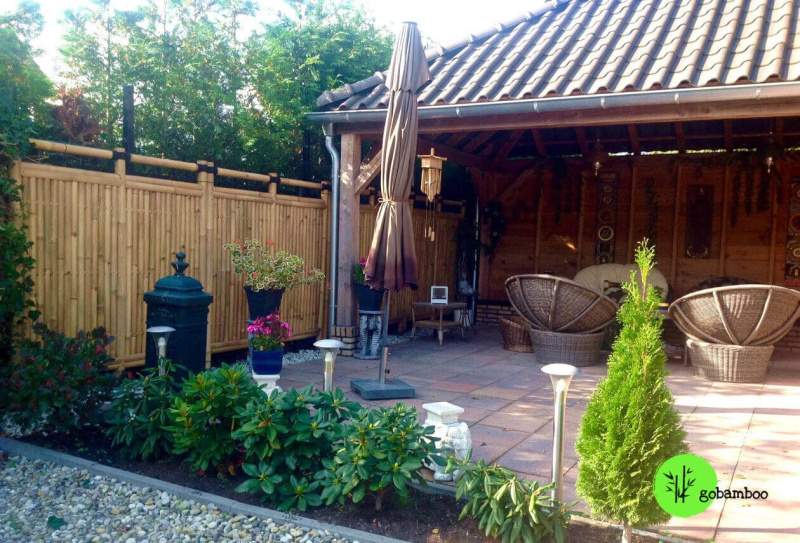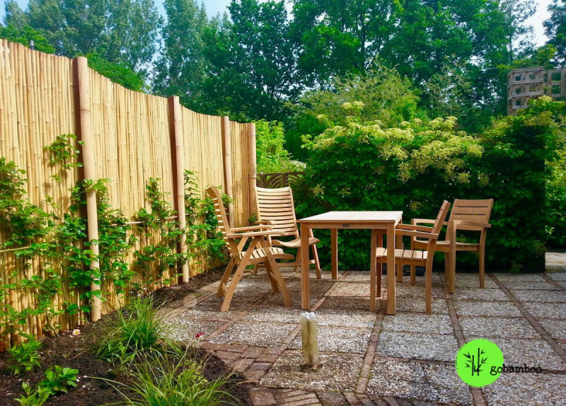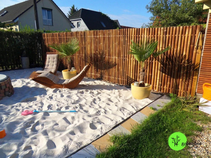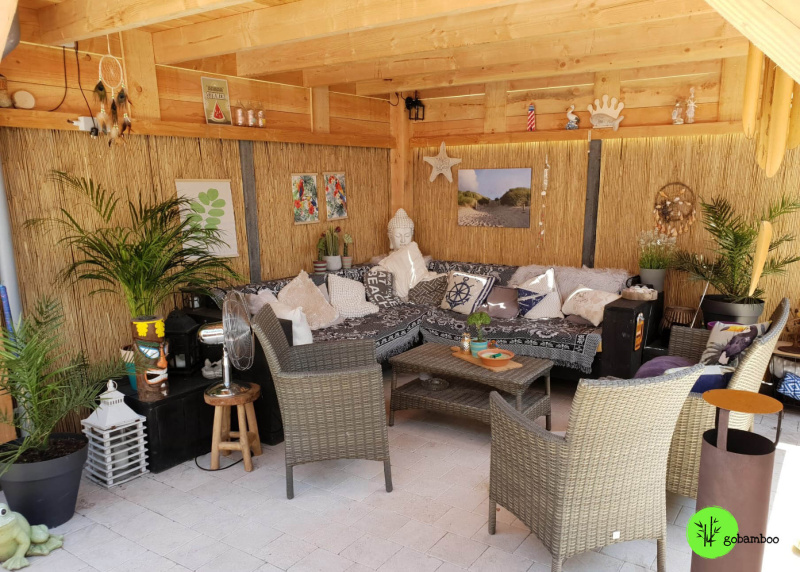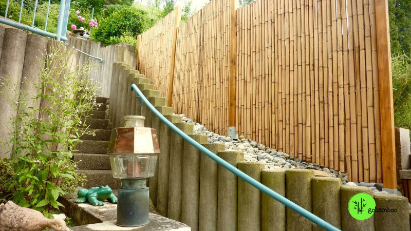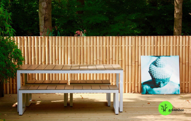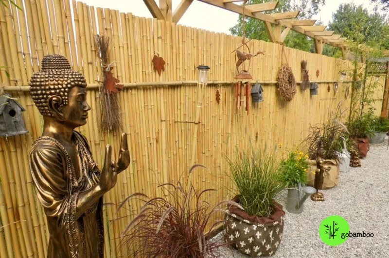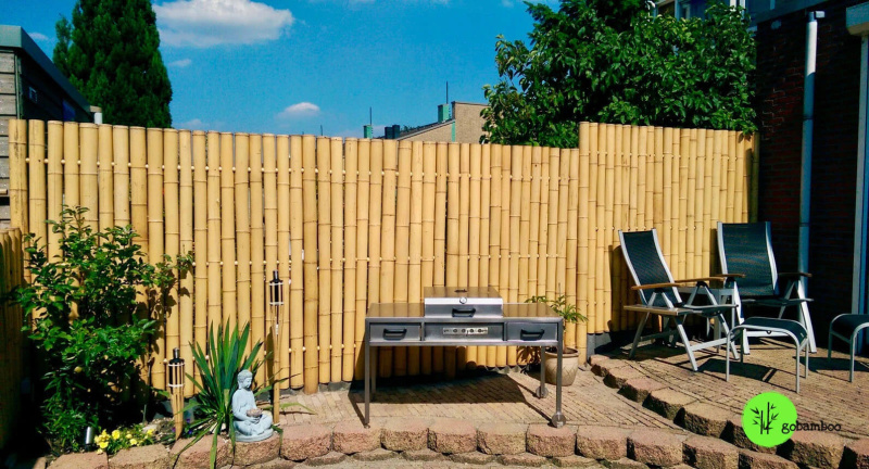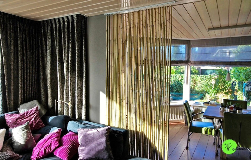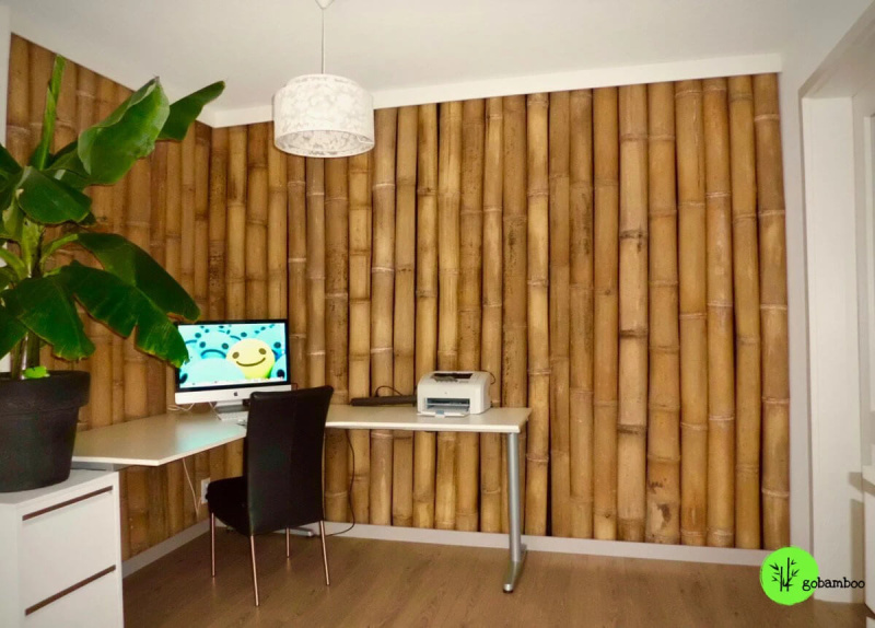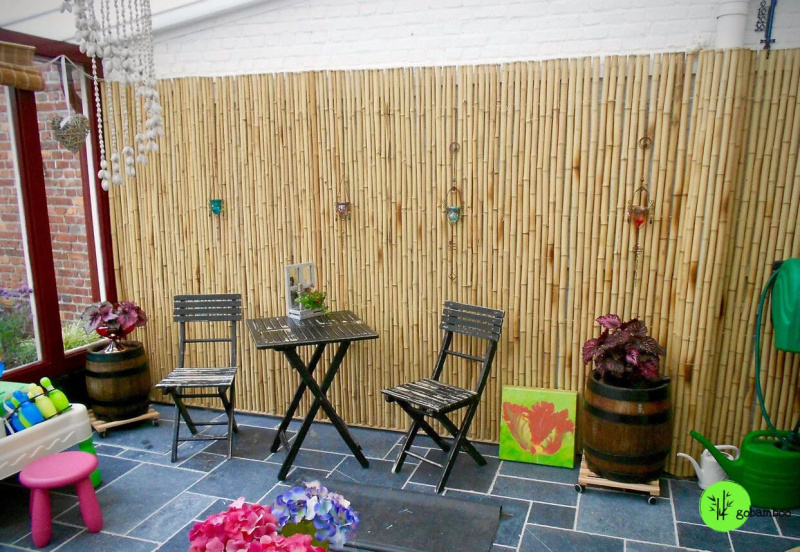 Panel z polkruhových bambusových tyčí prírodnej farby