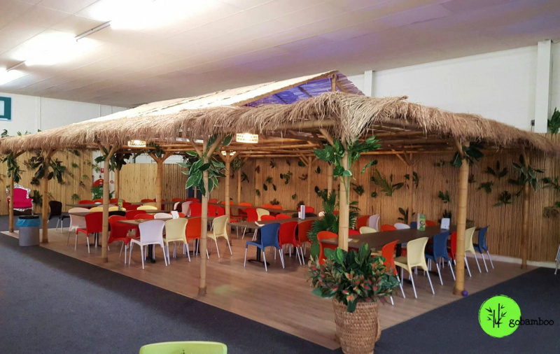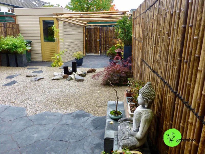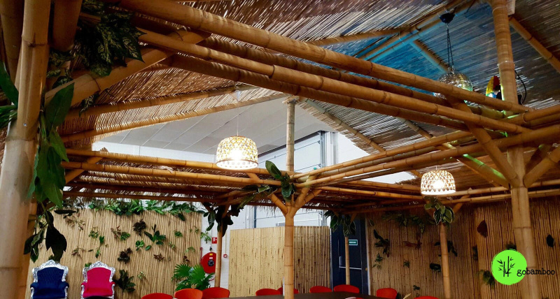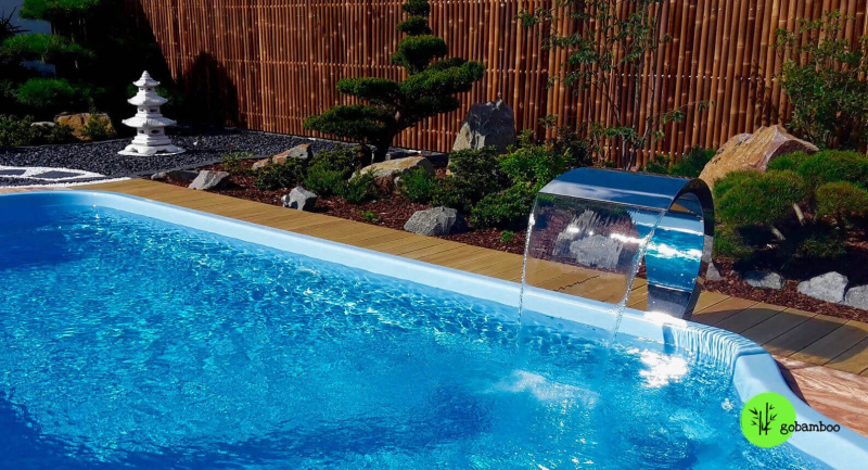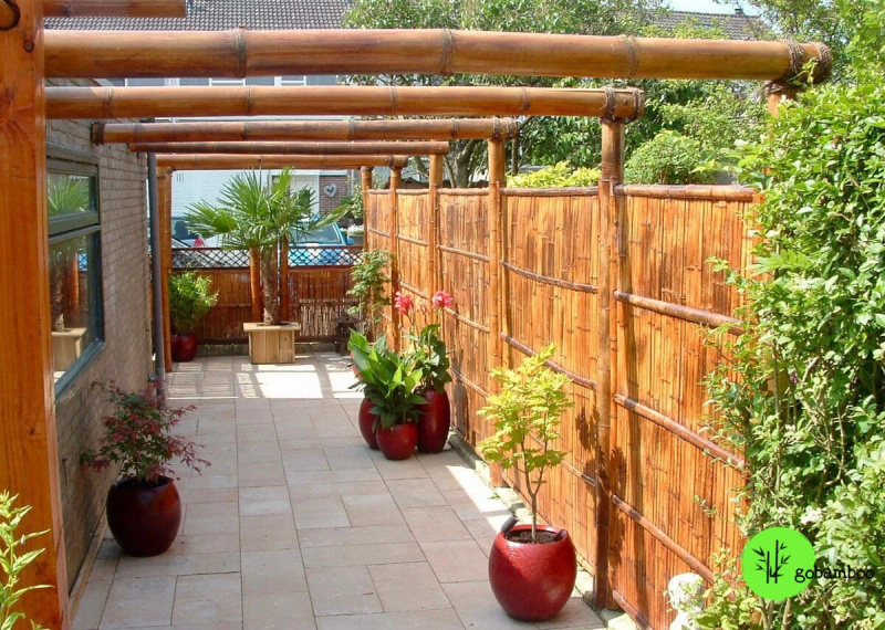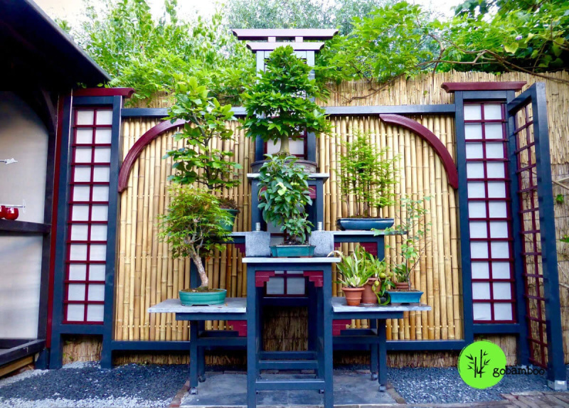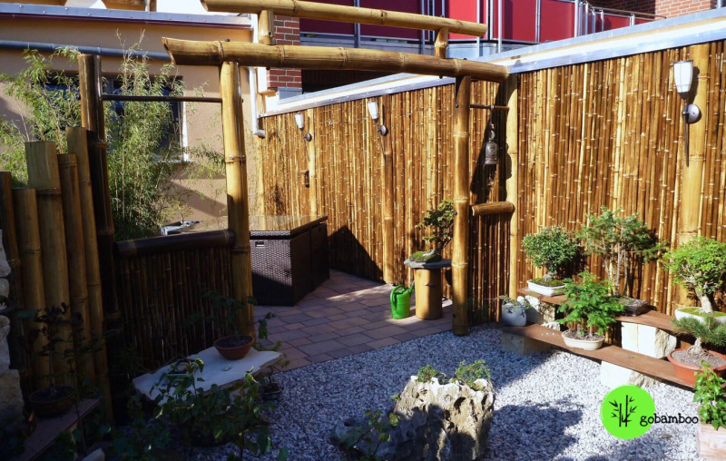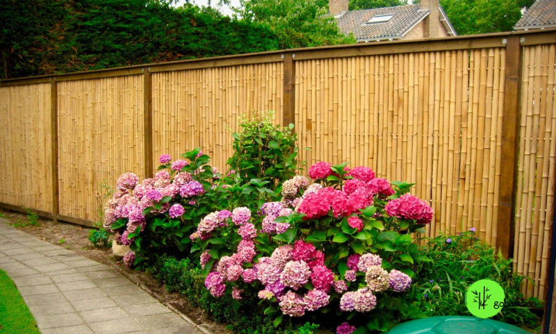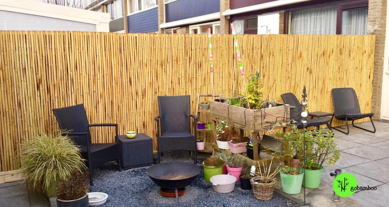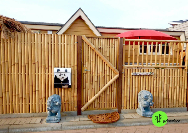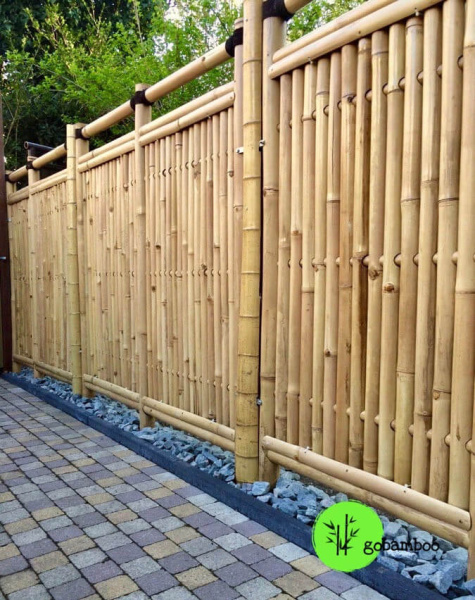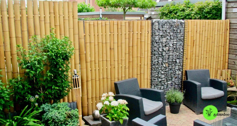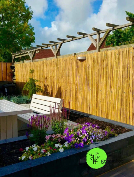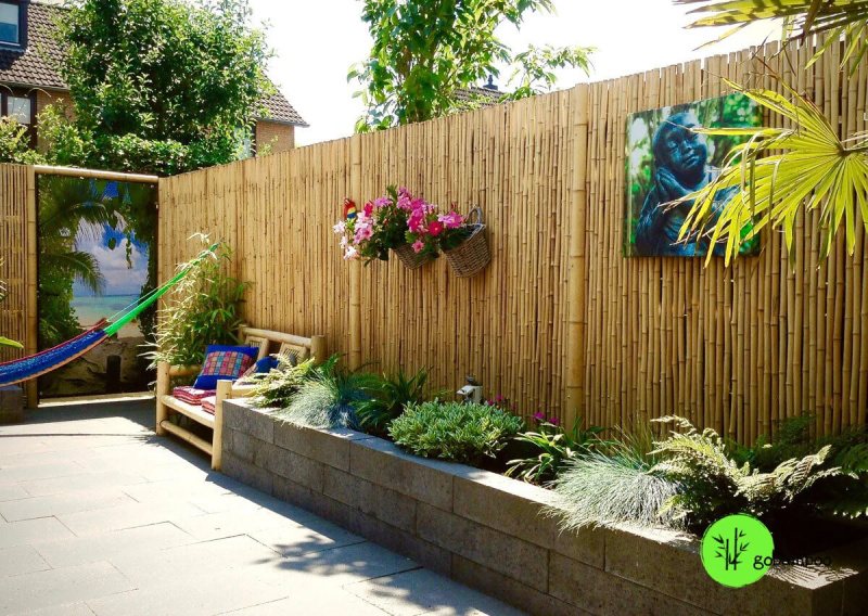 Panel z polkruhových bambusových tyčí prírodnej farby