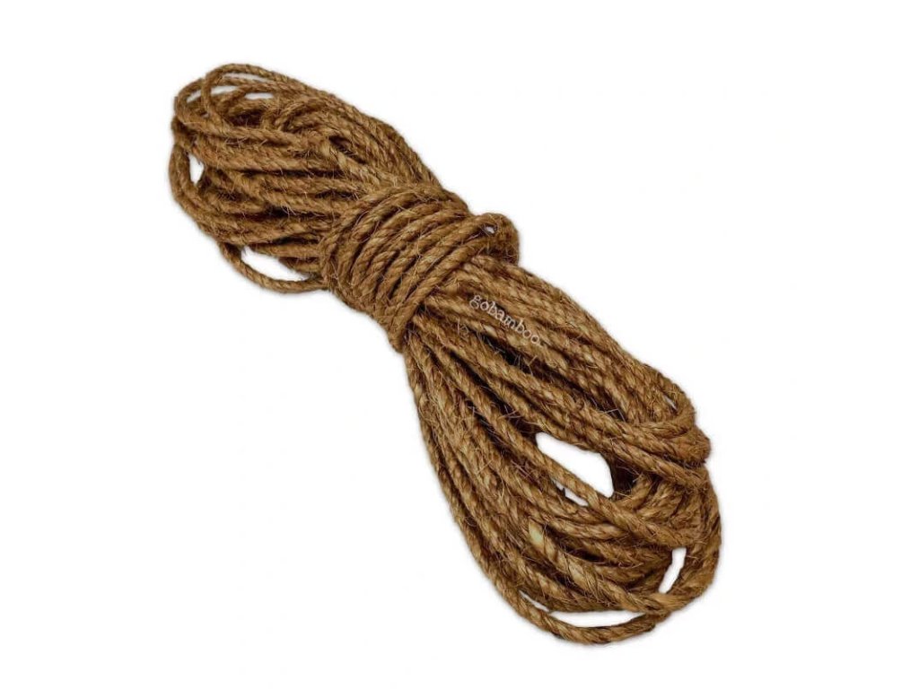 Naše manilské lano s priemerom 6 mm a dĺžkou 25 m je ideálne na zaistenie alebo dokončenie bambusových tyčí a bambusových spojov s veľkým priemerom. Manilské lano je zložené z prírodných vlákien rastliny banánov a má béžový vzhľad, ktorý vyzerá skvele v kombinácii s bambusom. Manilské lano možno použiť aj na skrytie skrutiek, ktoré sa používali na vzájomné spájanie bambusových tyčí. Jednoducho previažte lano cez spoje, aby ste dosiahli veľmi silný výsledok s dokonalou povrchovou úpravou. Toto 3-pramenné lano je spracované s olejom, ktorý mu dodáva mierne hladšiu štruktúru. Lano je triedy 1, čo znamená, že má vysokú pevnosť v ťahu 245 kg.