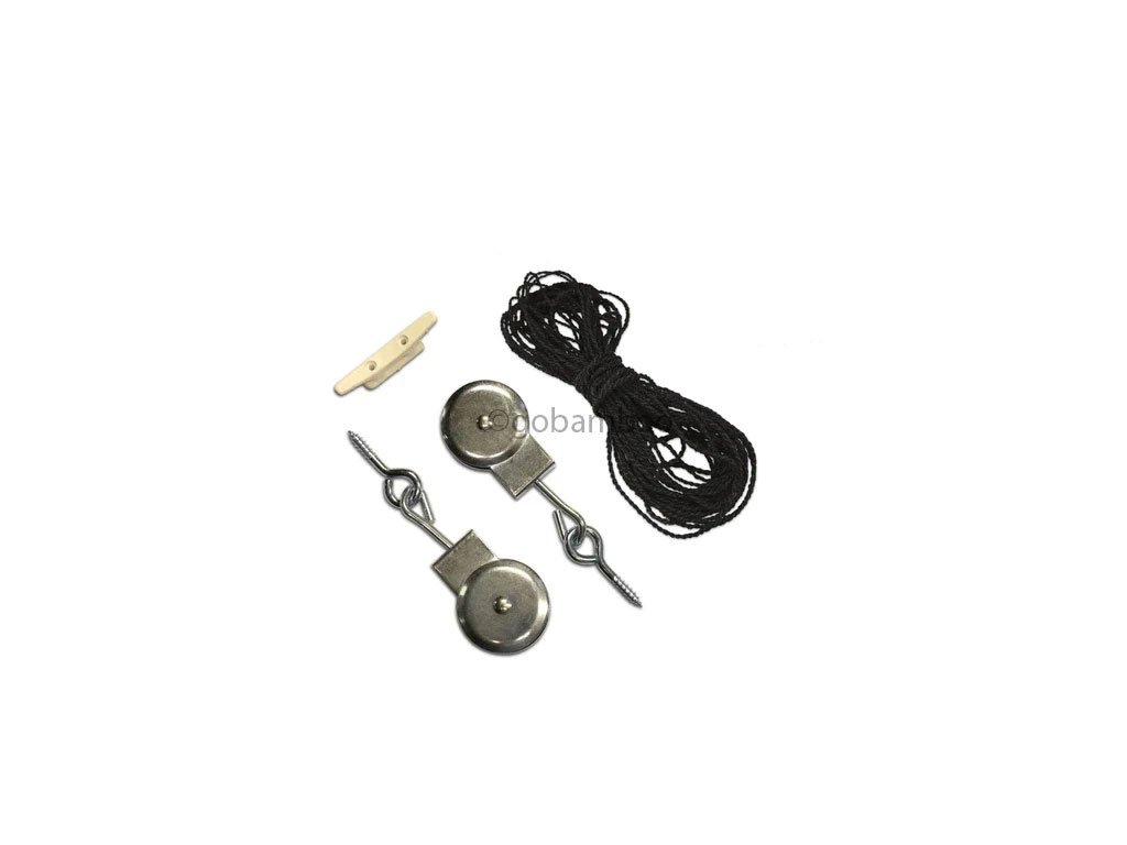S týmto systémom kladiek roliet môžete rýchlo a ľahko namontovať bambusové rolety. Sada pozostáva z 2 pozinkovaných kladiek so skrutkou, 12 metrového bavlneného lana s hrúbkou 3 mm a 1 plastovej príchytky pre zaistenie lana. Navíjací systém pre bambusové rolety je možné použiť tak vo vnútri, ako aj vonku na verandu, strechu, na altánky alebo terasu.