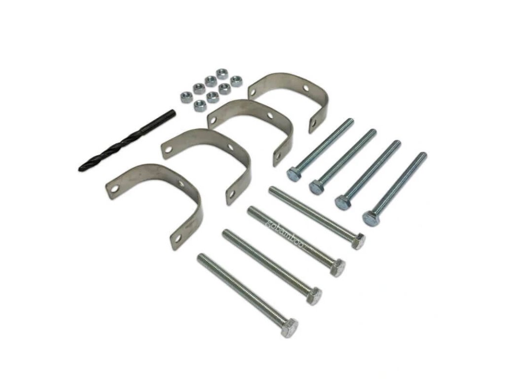 Naša univerzálna montážna sada z nehrdzavejúcej ocele je špeciálne vyvinutá na rýchlu a ľahkú inštaláciu bambusových plotových panelov a je vhodná pre bambusové panely s hrúbkou bambusu od 6 do 9 cm.