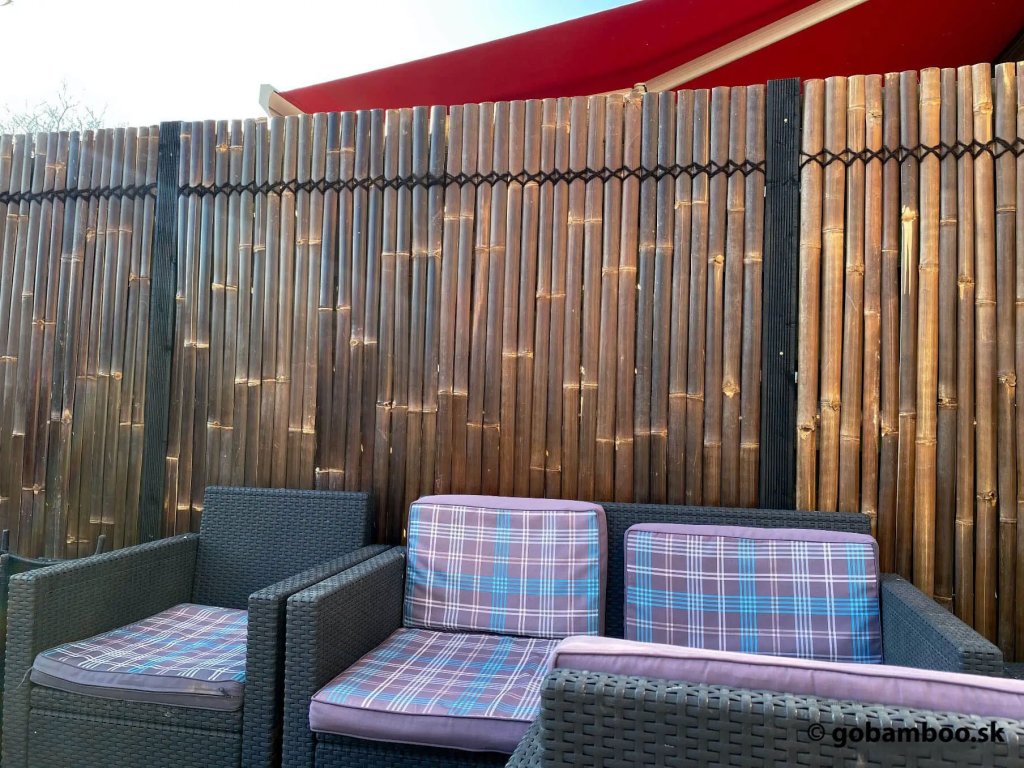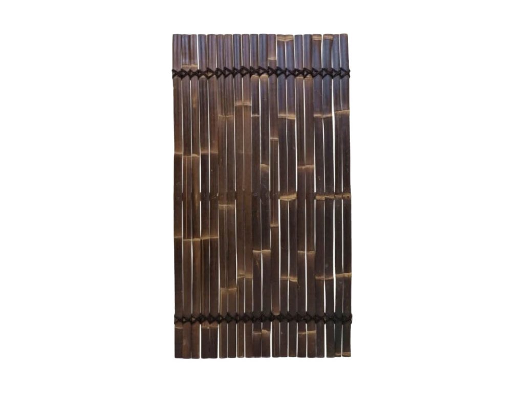Panel z bambusových lamiel tmavohnedej farby dodá vašej záhrade alebo terase krásny a exotický nádych. Tmavohnedé bambusové lamely v týchto oploteniach majú priemernú šírku 3 až 5 cm a sú spojené s vodorovnými bambusovými lamelami a prírodným čiernym lanom z kokosových vlákien , ktoré prechádzajú celou šírkou panelového plotu. Bambusové ploty z bambusových lamiel sú lacnejšou alternatívou pre panely z polkruhových bambusových tyčí a sú špeciálne navrhnuté na inštaláciu k existujúcemu drevenému plotu alebo k stene.