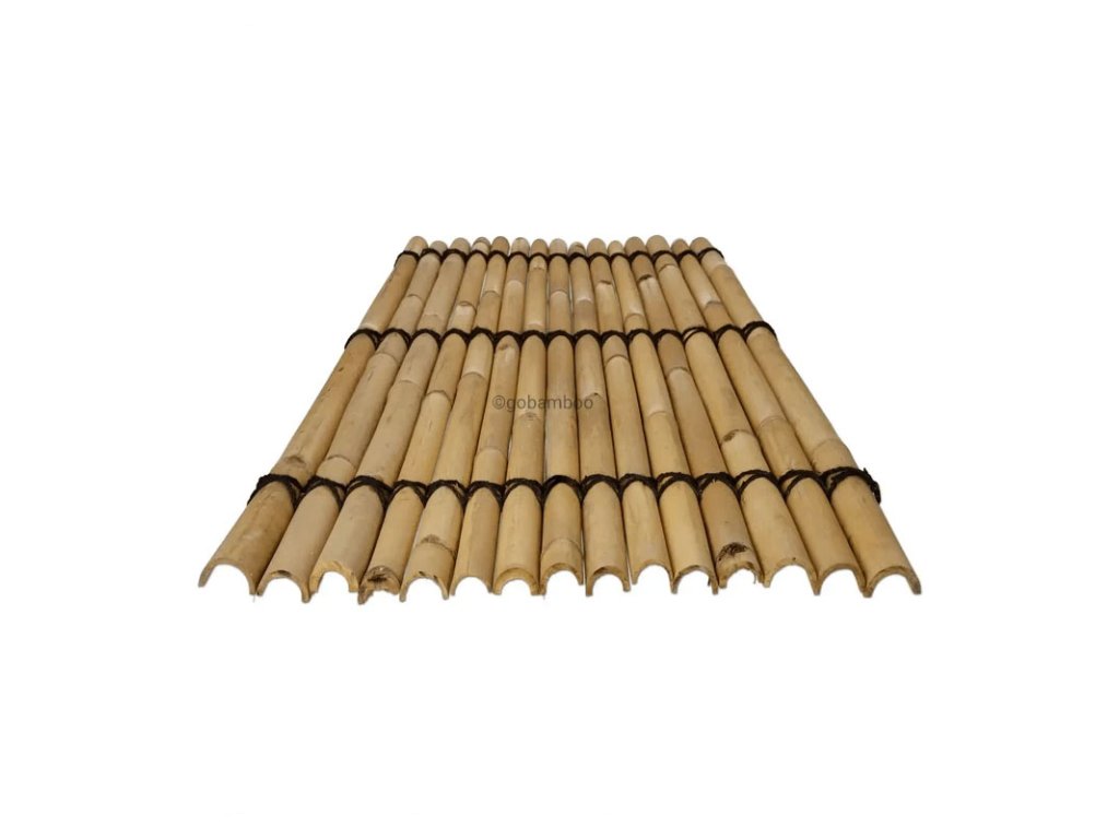 Polkruhové bambusové plotové panely sú špeciálne navrhnuté na inštaláciu k existujúcemu pletivovému oploteniu, drevenému plotu alebo k stene, a preto sú ľahké a lacnejšie ako štandardný bambusový plot z celých bambusových tyčí.