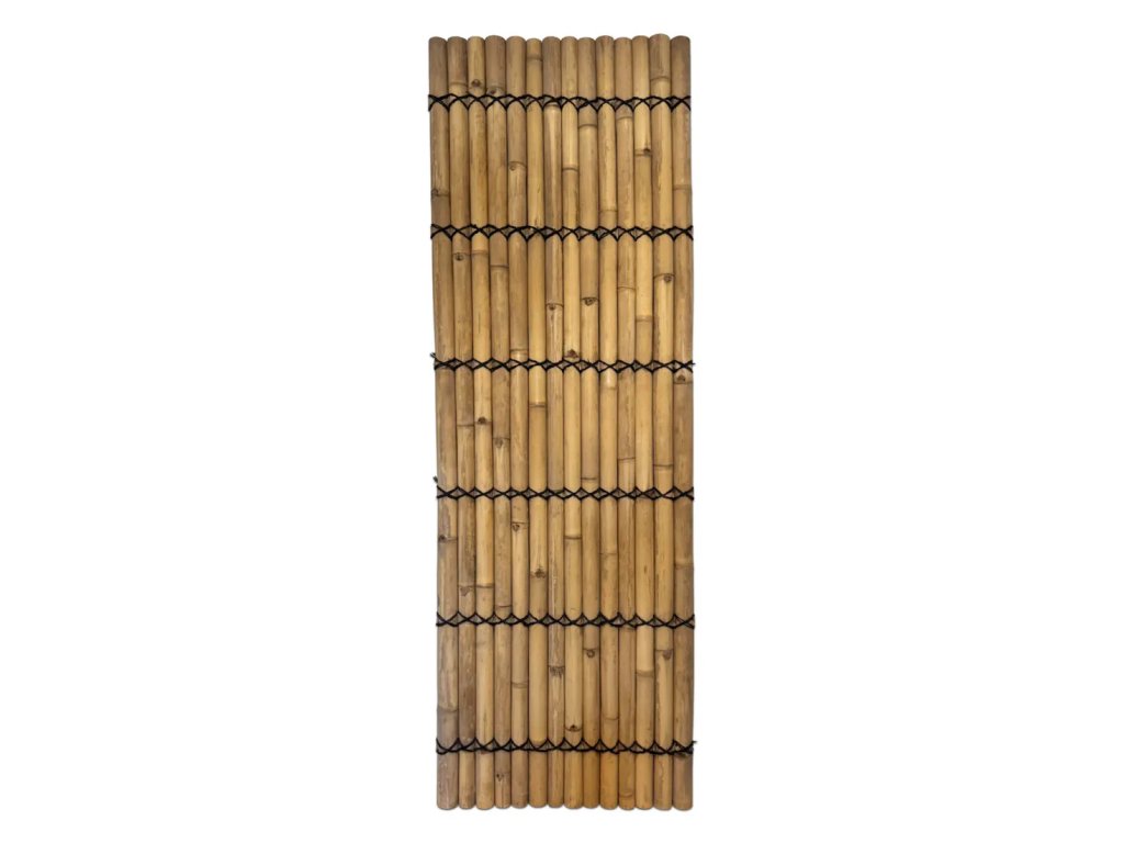 Polkruhový bambusový plot dodá vašej záhrade alebo terase krásny a exotický nádych. Polkruhové bambusové tyče v týchto oploteniach majú priemer 6 až 9 cm a sú spojené bambusovými lamelami a prírodným čiernym lanom z kokosových vlákien , ktoré prechádzajú celou šírkou panelového plotu.
