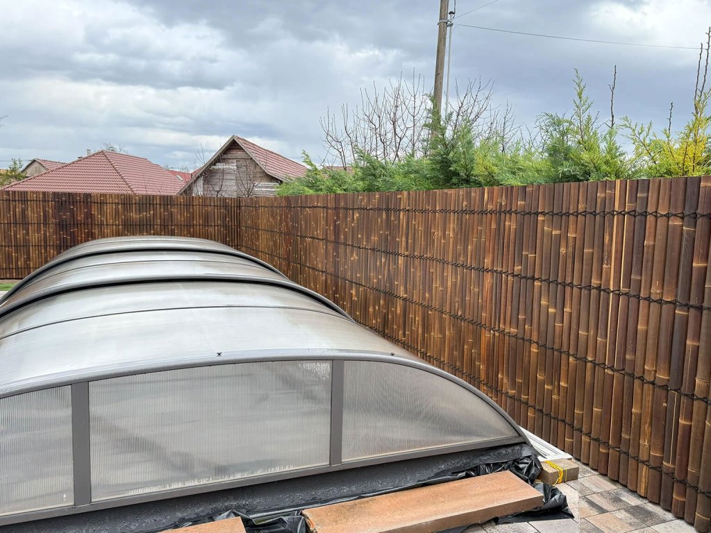 Polkruhové bambusové plotové panely sú špeciálne navrhnuté na inštaláciu k existujúcemu drevenému plotu a k stene, a preto sú ľahké a lacnejšie ako štandardné panely z celých bambusových tyčí.