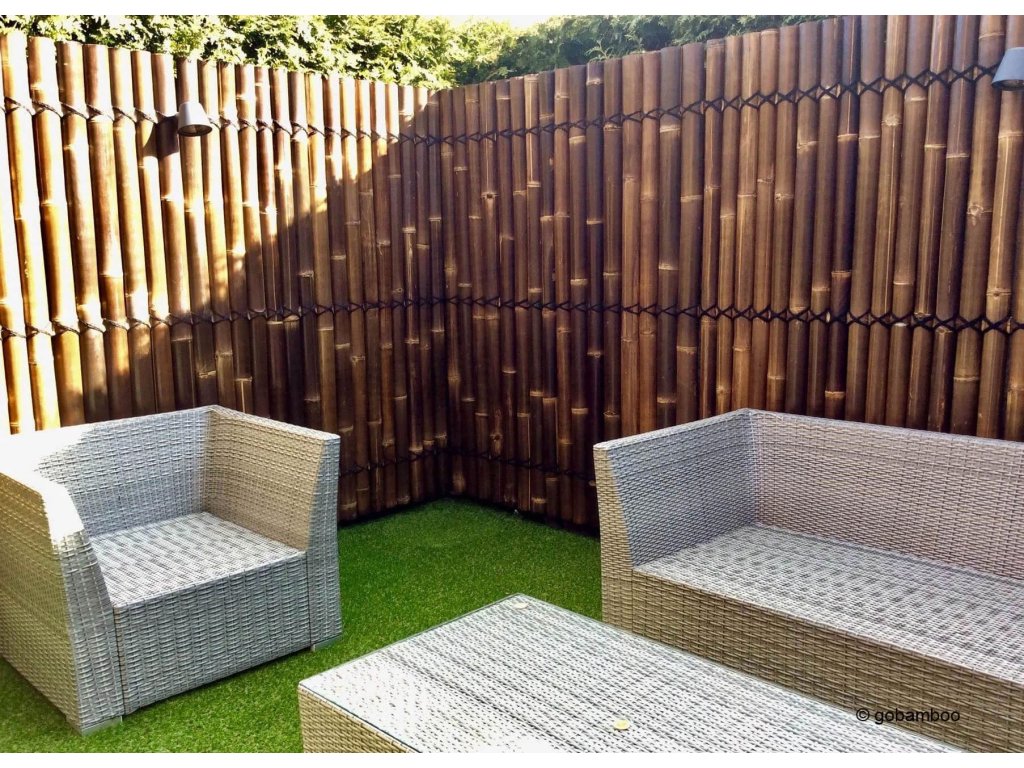 Polkruhový bambusový plot dodá vašej záhrade alebo terase krásny a exotický nádych. Polkruhové čierne bambusové tyče v týchto oploteniach majú priemer 6 až 9 cm a sú spojené bambusovými lamelami a prírodným čiernym lanom z kokosových vlákien, ktoré prechádzajú celou šírkou panelového plotu.