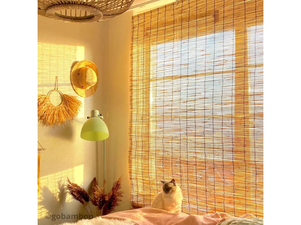 Naše bambusové rolety sú vyrobené z pevných, slanovodných trstinových stoniek, ktoré sú zviazané čiernym palmovým lanom. Vďaka tejto konštrukcii je možné rolety ľahko navíjať a spúšťať na požadovanú výšku. Trstina je ľahký materiál, takže rolety sa ľahko ovládajú aj pri väčšej šírke okna a nie sú príliš ťažké.