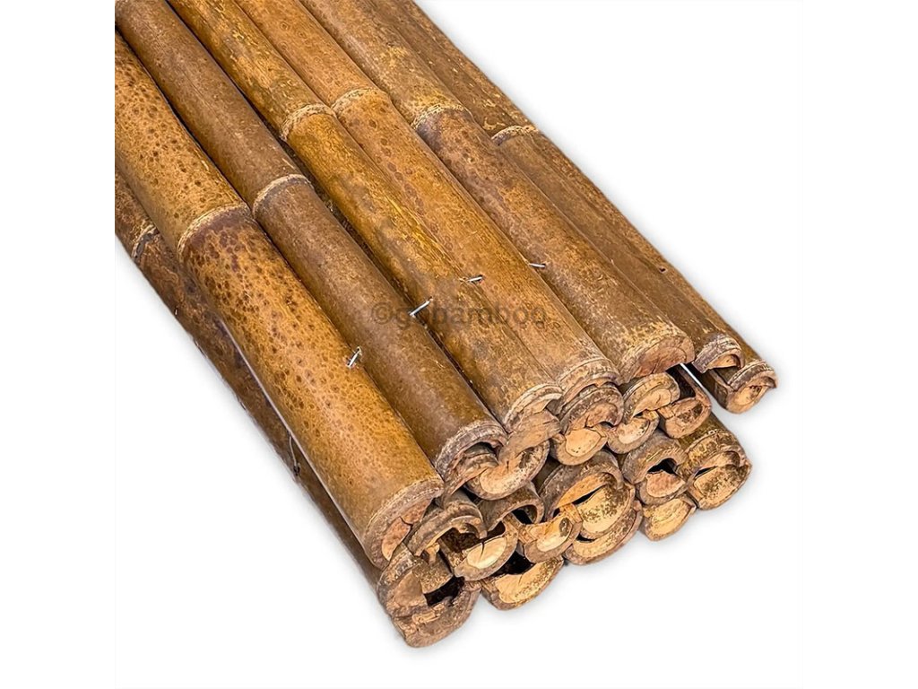 Naše polkruhové bambusové rolky sú vyrobené z bambusových tyčí Phyllostachys nigra Boryana s priemerom 30-50 milimetrov. Pretože sú rolky vyrobené z polovičných okrúhlych tyčí, bambus praskne menej, zatiaľ čo stále môžeme zaistiť prirodzený vzhľad a minimálny priehľad.