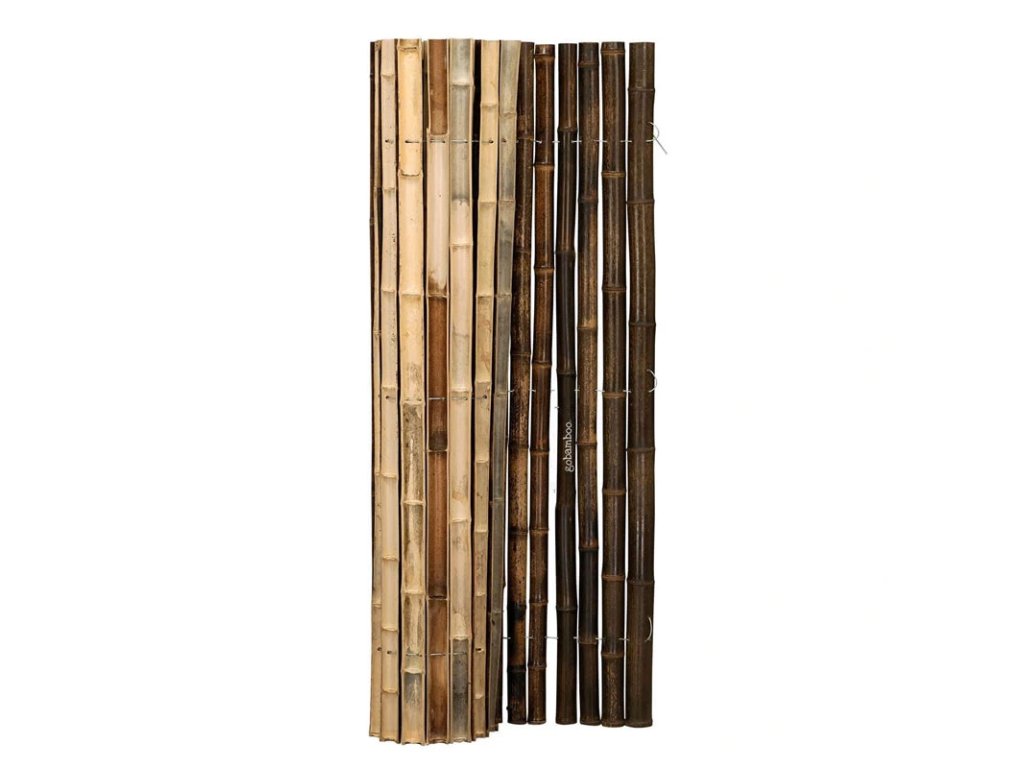 Naše polkruhové bambusové rolky sú vyrobené z bambusových tyčí Phyllostachys nigra s priemerom 30-50 milimetrov. Pretože sú rolky vyrobené z polovičných okrúhlych tyčí, bambus praskne menej, zatiaľ čo stále môžeme zaistiť prirodzený vzhľad a minimálny priehľad.