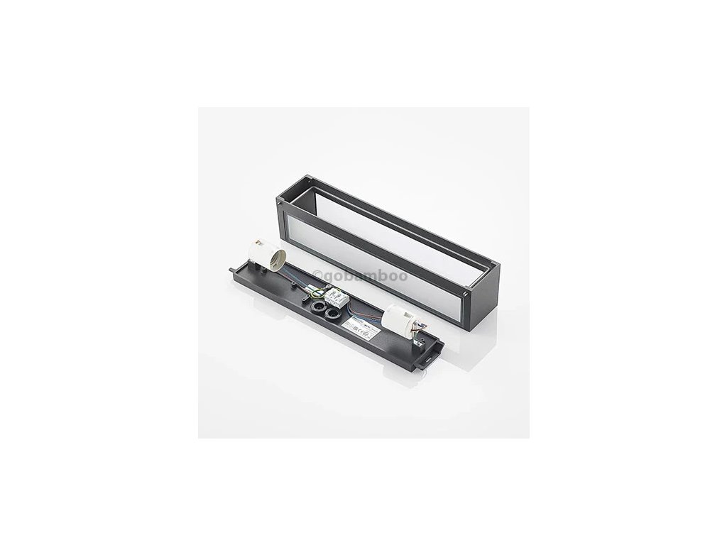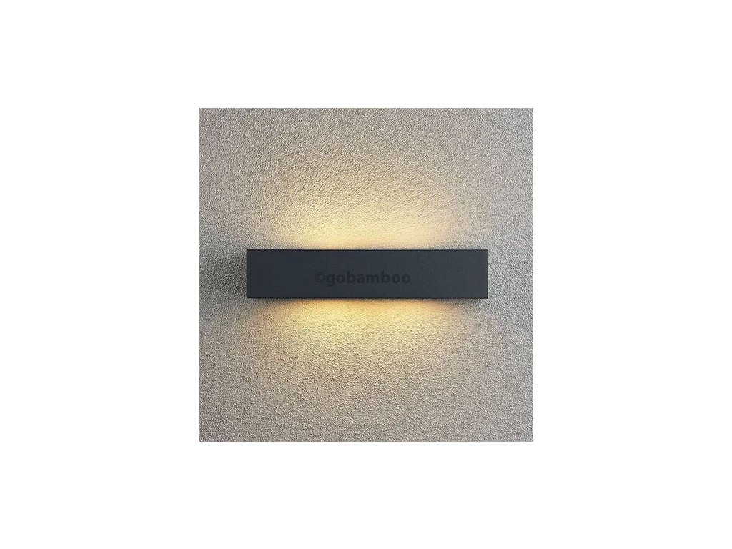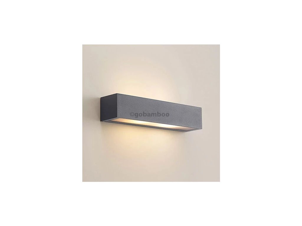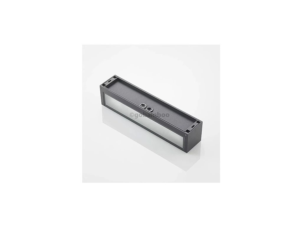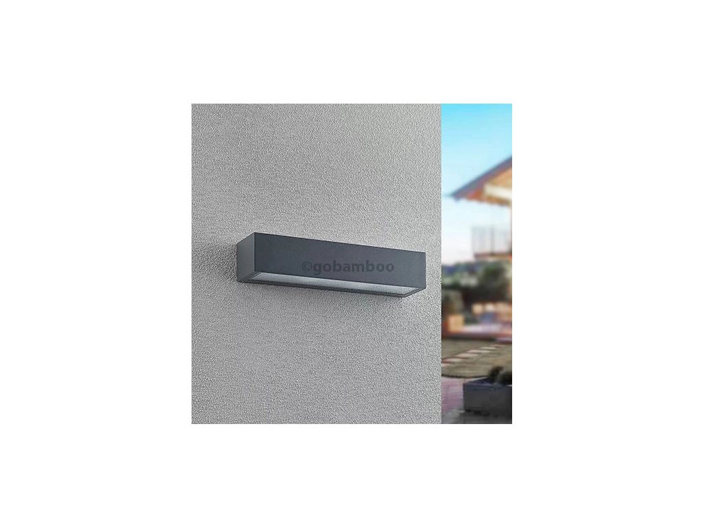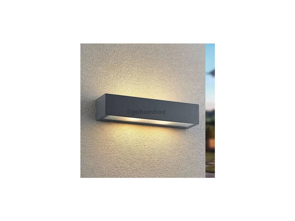Uhlové vonkajšie nástenné svietidlo Lengo v podlhovastom tvare, tmavosivé, vyžarovanie svetla smerom nahor a nadol Lengo je uhlové vonkajšie nástenné svietidlo s obdĺžnikovým, podlhovastým tvarom, ktoré možno použiť na rôzne spôsoby v celom dome, ale najlepšie sa vďaka svojmu lineárnemu dizajnu hodí na zdobenie moderného prostredia. Telo z tlakovo liateho hliníka má povrchovú úpravu v tmavosivej farbe, ktorá pôsobí veľmi nadčasovo, a v hornej a dolnej časti sú sklenené vložky, ktoré umožňujú nerušený únik svetla. Efekt na stene je viditeľný už z diaľky a zintenzívni sa, ak sa v určitej vzdialenosti od seba namontuje nie jedno, ale viacero nástenných svietidiel v rade. Potom môžete osvetliť vonkajší priestor úplne a pritom relatívne bez oslnenia a tiež trochu nastaviť scénu.