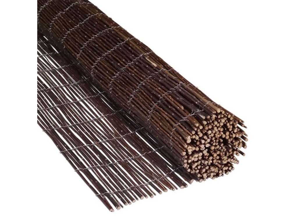 Náš vŕbový plot je vyrobený z vysoko kvalitného vŕbového prútia. Jednotlivé palice sú v priemere hrubé 6-8 mm a sú zviazané silnými pozinkovanými oceľovými drôtmi, ktoré sú od seba vzdialené približne 10 cm. Naše vŕbové ploty majú mieru priehľadnosti približne 30 - 40% a vytvárajú prirodzený vzhľad vašej záhrady, balkónu alebo terasy.